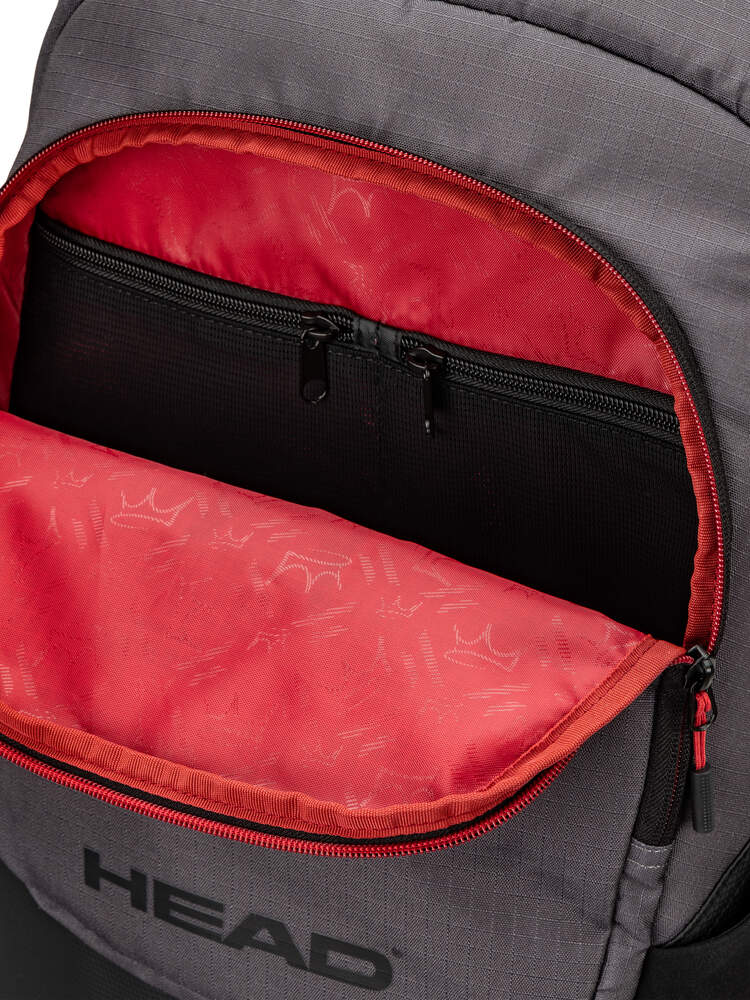 Vom Platz bis in die Stadt und wohin auch immer Ihr Tag Sie führt – der COELLO PRO X PADEL BACKPACK bietet exklusiven, eleganten Stil. Als Teil der Arturo Coello-Kollektion, entworfen und entwickelt in Zusammenarbeit mit „King Coello“, hat diese Tasche ein Farb-Update erhalten und ist nun in Dunkelgrau erhältlich. Hergestellt aus recycelten PET-Flaschen, spricht dieser Rucksack sowohl Umweltbewusste als auch Stilbewusste an. Sein glänzendes Kronen-Logo auf der Seite unterstreicht den Premium-Look. Zu den persönlichen Akzenten gehört die Wahl der Farbe Rot – eine von Coellos Lieblingsfarben – für das Innere der Tasche sowie die Kronen-Logos auf den Gurten, die zum unverwechselbaren Erscheinungsbild beitragen.